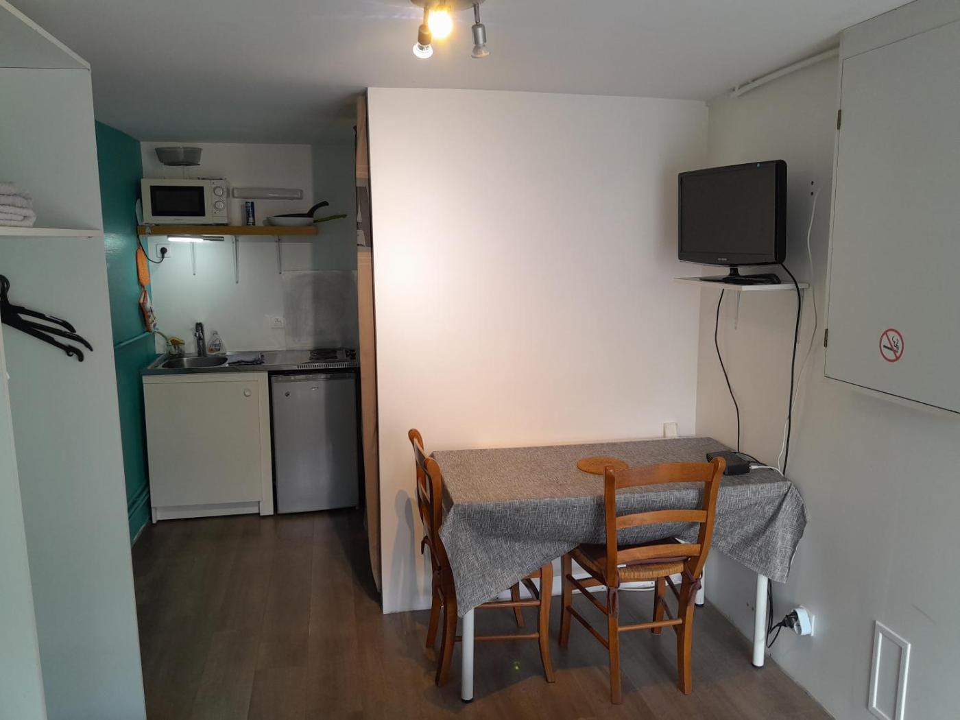 Appartement 1 Chambre. This apartment is comprised of 1 bedroom, kitchenette, a terrace and 1 bathroom with a shower. Guests will find a stovetop, a refrigerator, kitchenware and a microwave in the well-fitted kitchenette. The apartment also has a barbecue. The apartment offers a washing machine, a private entrance, a coffee machine, a flat-screen TV, as well as garden views. The unit offers 1 bed.