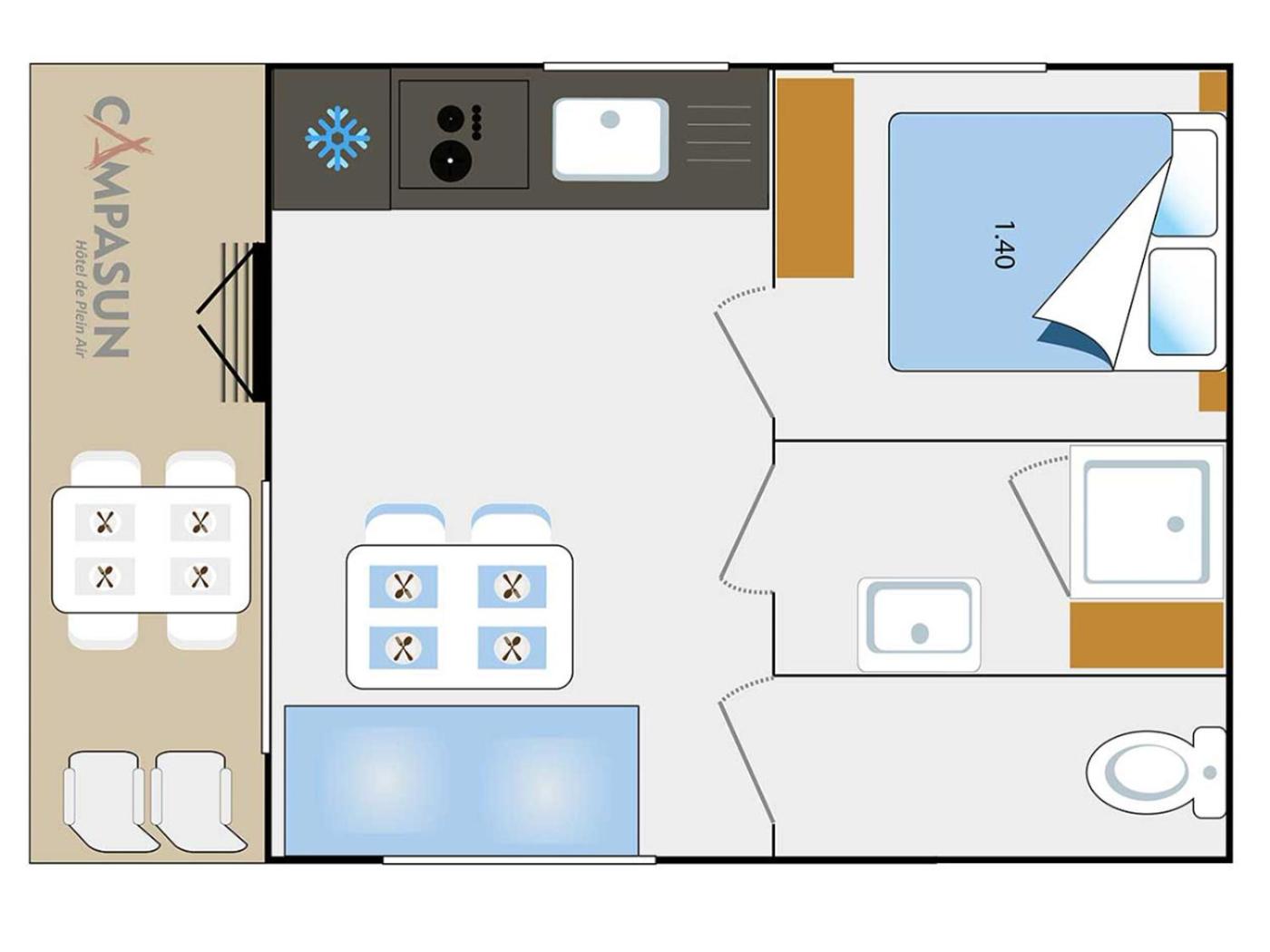 Esparon Mobile Home - 1 bedroom - 23 persons. This mobile home comes with 1 living room, 1 separate bedroom and 1 bathroom with a shower. The mobile home features a seating area. The unit has 2 beds. ;