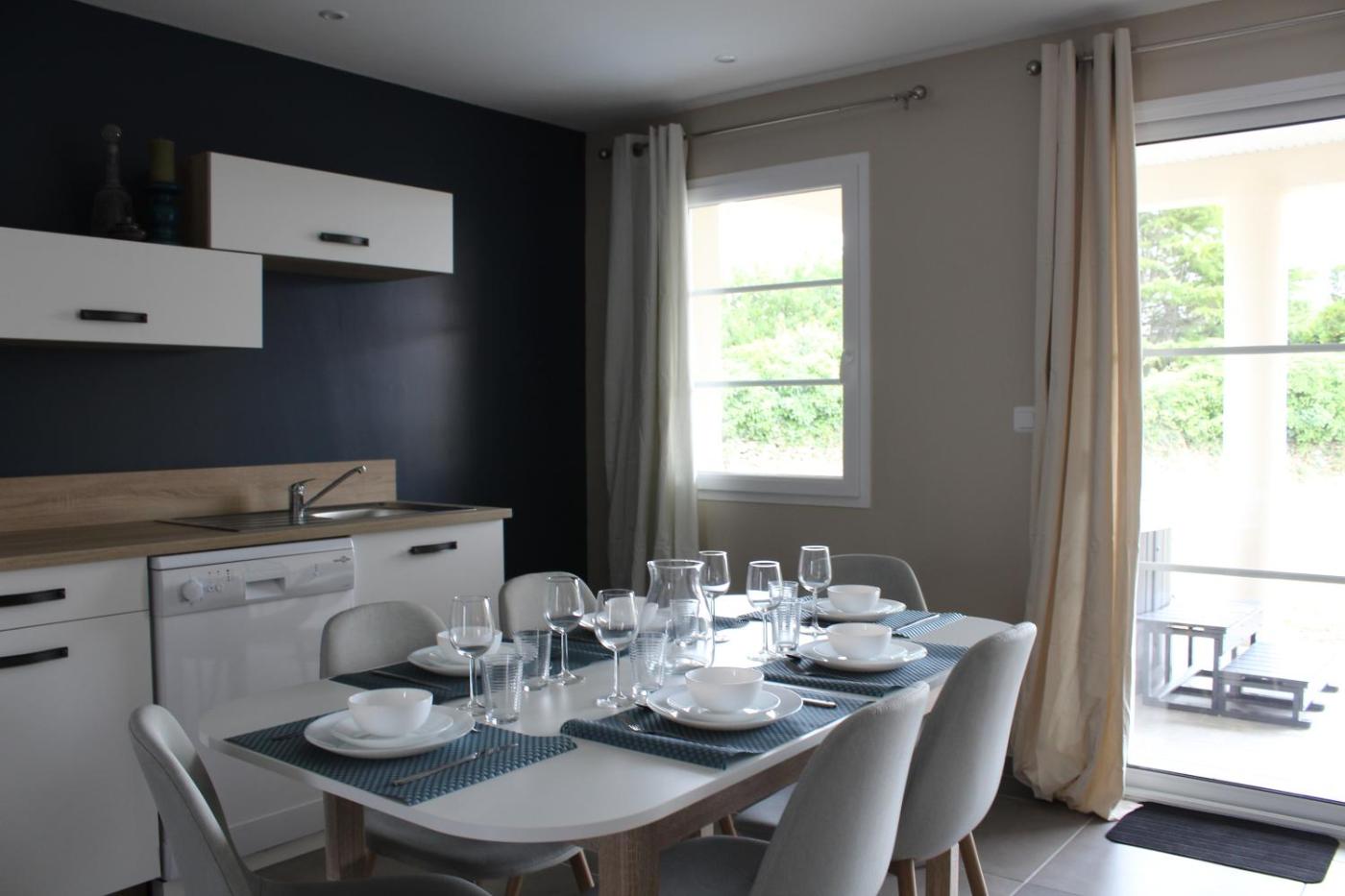 Maison 3 Chambres. This holiday homes standout feature is the hot tub. Boasting a private entrance, this air-conditioned holiday home includes 1 living room, 3 separate bedrooms and 2 bathrooms with a bath and a shower. Guests will find a stovetop, a refrigerator, a dishwasher and kitchenware in the well-equipped kitchen. The holiday home also features a barbecue. Featuring a terrace with garden views, this holiday home also offers a washing machine and a flat-screen TV. The unit has 4 beds.