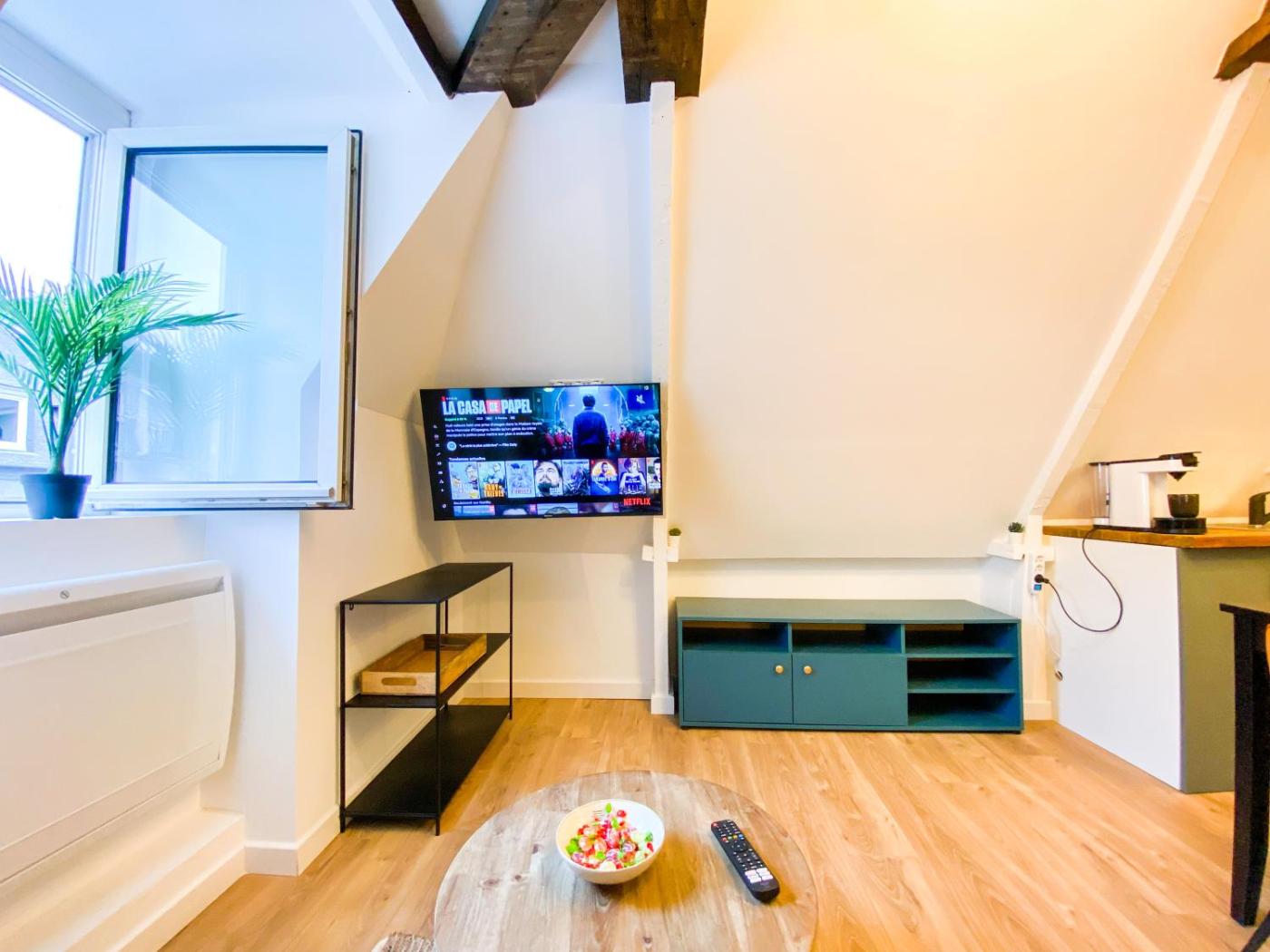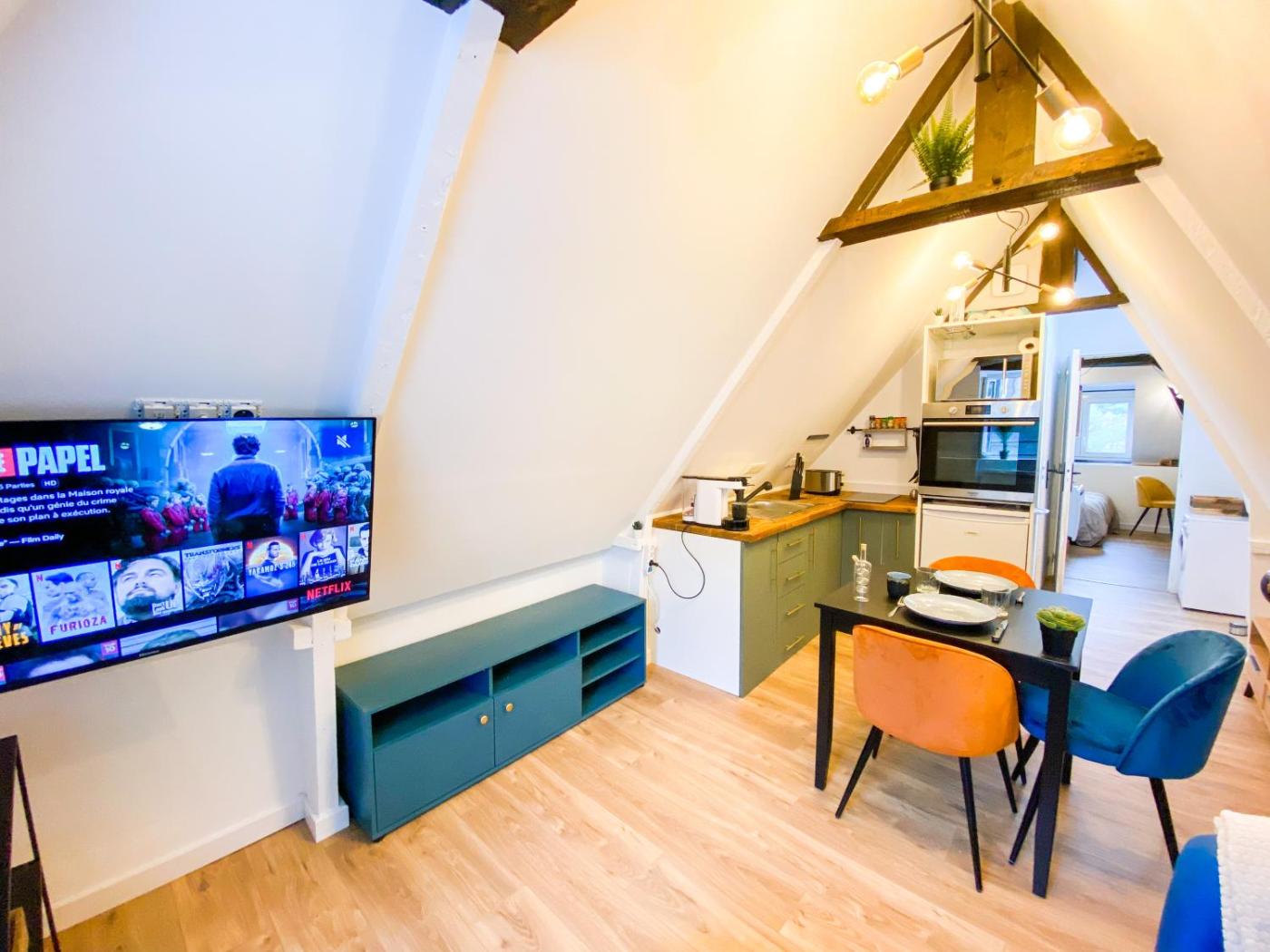 Appartement 1 Chambre. Guests can make meals in the kitchen that features a refrigerator, kitchenware, an oven and a microwave. The apartment features a washing machine, a private entrance, a tea and coffee maker, a flat-screen TV with streaming services, as well as garden views. The unit has 1 bed.
