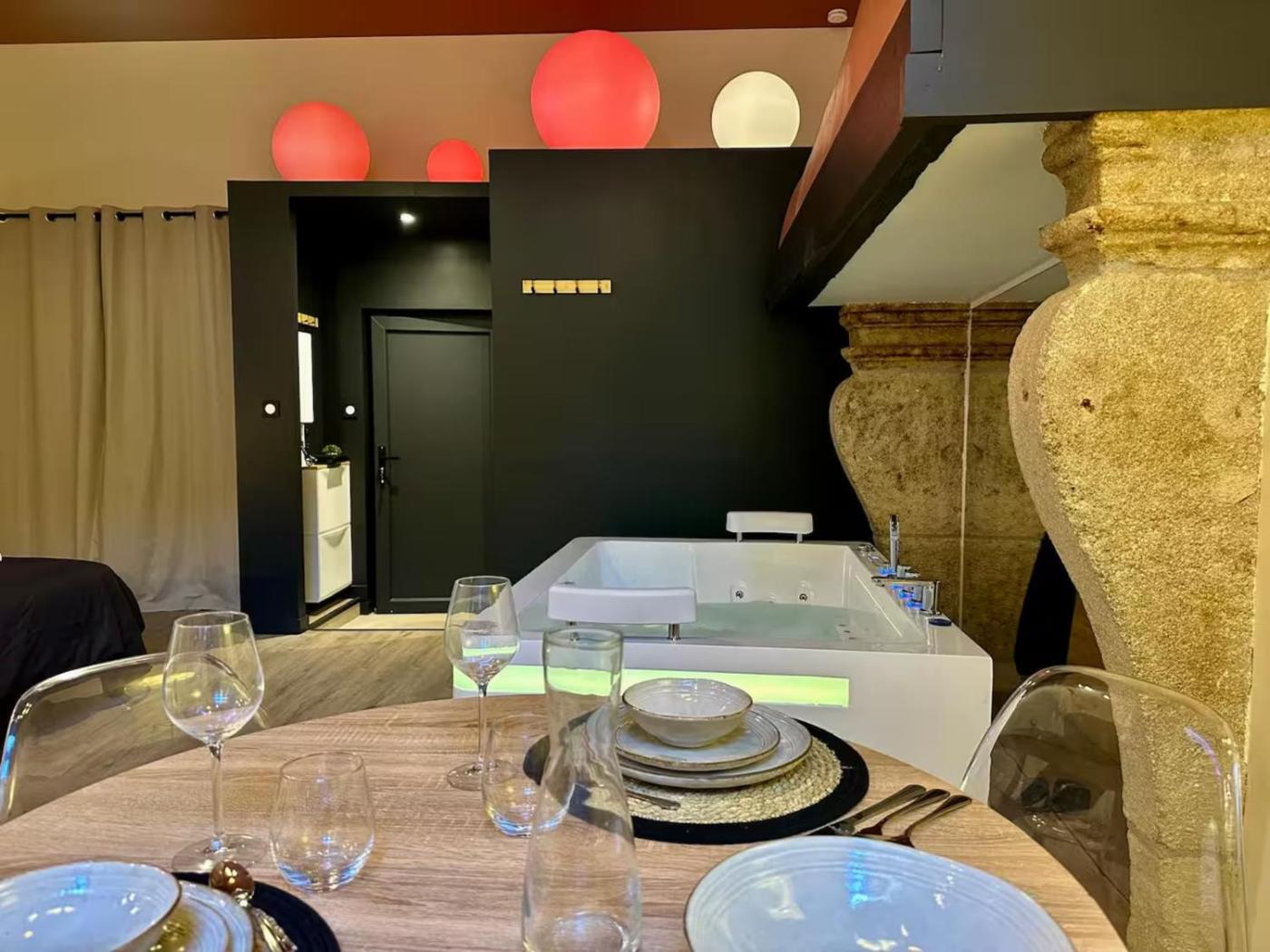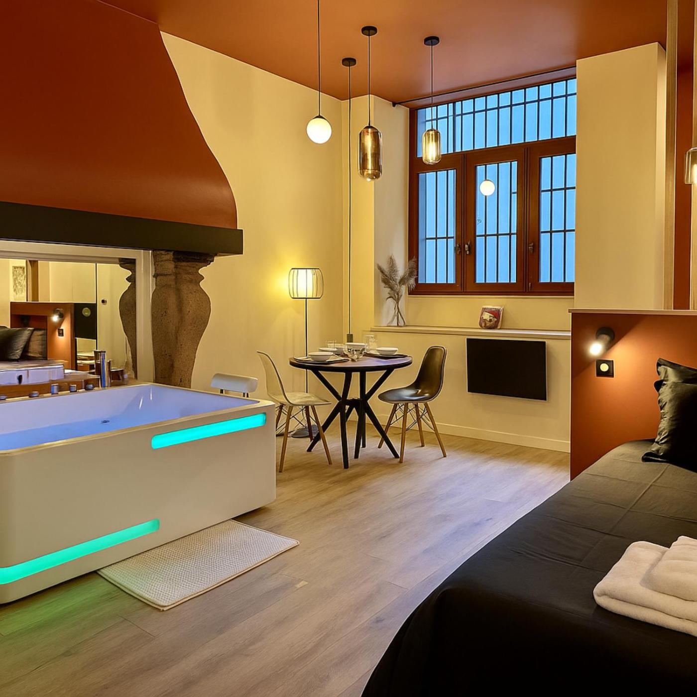 Appartement 1 Chambre. The hot tub and spa bath are the standout features of this apartment. The apartment has 1 bedroom and 1 bathroom with a walk-in shower and bathrobes. In the kitchen, guests will find a stovetop, a refrigerator, kitchenware and a microwave. This apartment features a tea and coffee maker, heating and a flat-screen TV. The unit has 1 bed.