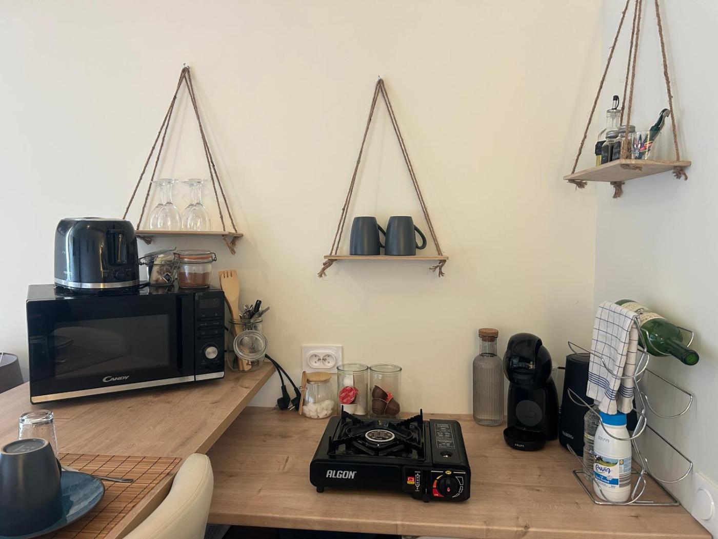 Maison 1 Chambre. Featuring a private entrance, this holiday home is comprised of 1 living room, 1 separate bedroom and 1 bathroom with a shower and a hairdryer. The well-equipped kitchenette features a stovetop, a refrigerator, a microwave and a toaster. The holiday home offers a tea and coffee maker, a seating area, a dining area, a flat-screen TV, as well as garden views. The unit offers 2 beds.