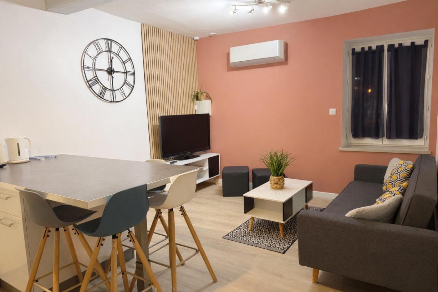 Appartement 2 Chambres. Guests can make meals in the kitchen that has a stovetop, a refrigerator, kitchenware and an oven. The spacious air-conditioned apartment features a flat-screen TV, a washing machine, a coffee machine, a dining area as well as garden views. The unit has 5 beds.