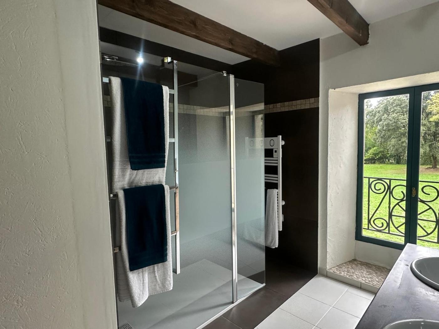 Chambre Double. The double room features a tiled floor, heating, as well as a private bathroom boasting a shower. The spacious air-conditioned double room offers a flat-screen TV, a tea and coffee maker, a seating area, a wardrobe as well as garden views. The unit has 1 bed. ;